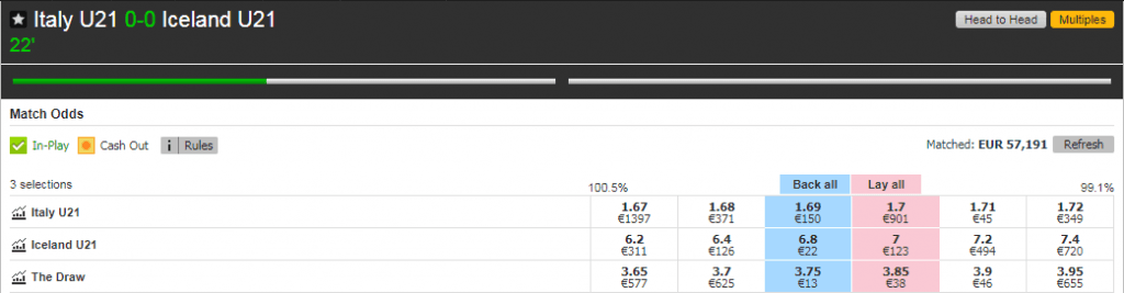 Să luăm drept exemplu meciul dintre Italia U21 și Islanda U21.