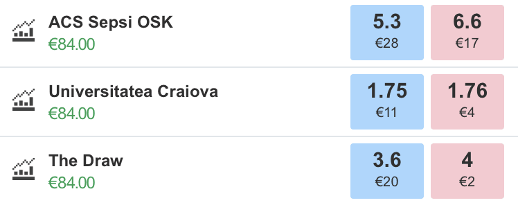 Cu 5 zile înainte de meci, cota pentru victoria Craiovei în meciul cu Sepsi era în jur de 2.00.