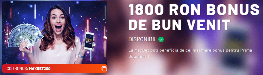 Vei avea TRIPLUL primei depuneri în cont! Introdu codul bonus MAXBET200 atunci când efectuezi prima depunere, de maxim 900 de Lei, iar MaxBet îți va oferi în plus în cont un bonus egal cu 2 X Valoarea depunerii tale!