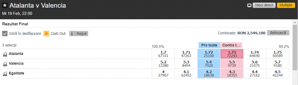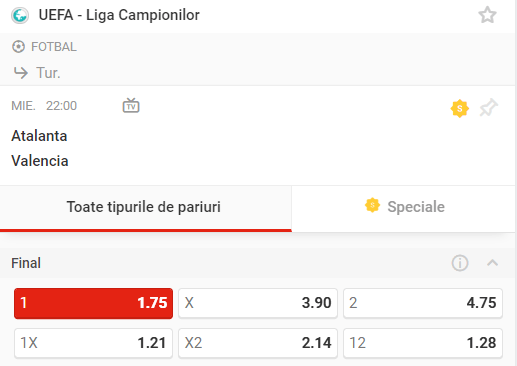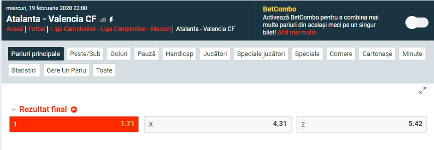 Fig. 3 – Cote Atalanta vs Valencia în Superbet