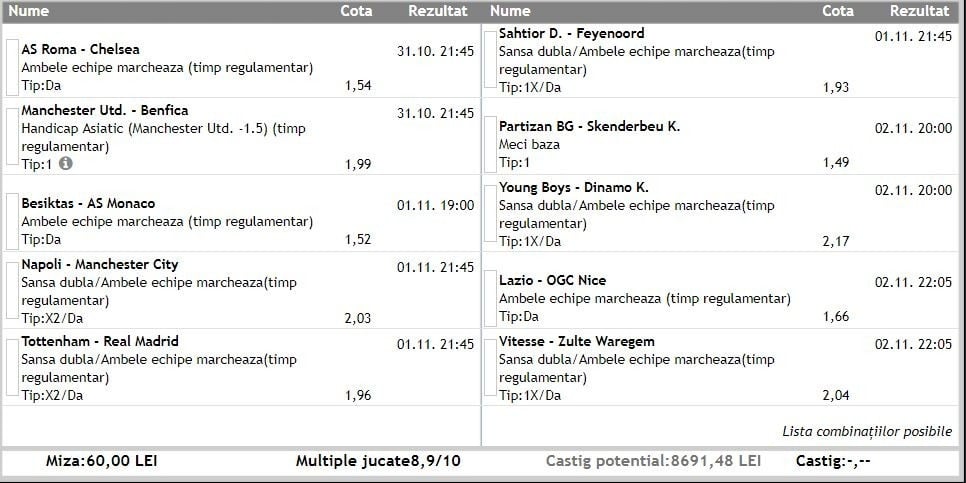 Overall un minus de aproximativ 300 de lei în octombrie, mai exact 5.4% pierdere raportat la bankrollul inițial de 5500 de lei.