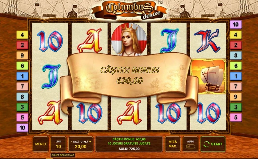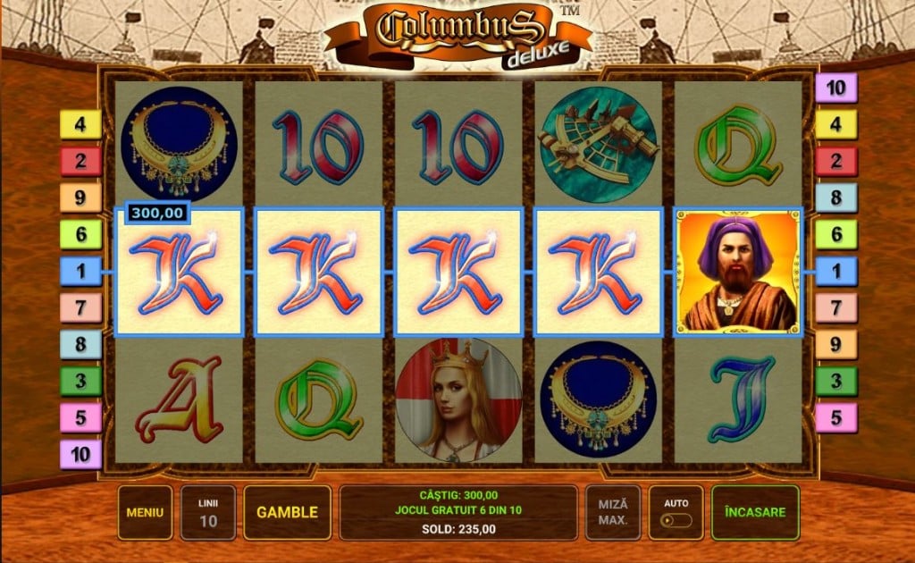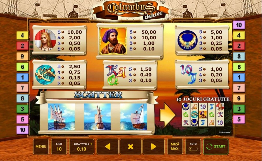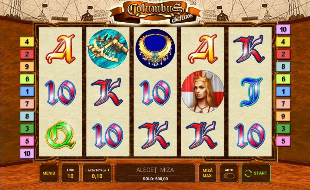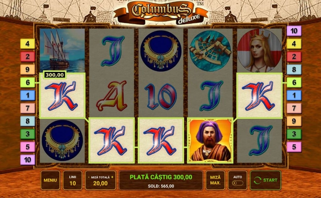 Rețeta Novomatic funcționează și în Columbus Deluxe: un joc simplist, cu 10 linii de plată, foarte apropiat de jocurile de aparate din săli. Exploratorii sunt foarte folosiți în păcănele. Book of Ra, Gonzo’s Quest sau Book of Dead sunt doar câteva exemple de sloturi video extrem de jucate. Exploratorii maritimi sunt întâlniți mai rar, dar când sunt, jocurile cu ei sunt adevărate staruri. Columbus Deluxe e în categoria de jocuri Novomatic recomandate celor care vor să treacă la păcănele online fără să aibă prea mare experiență. E suficient de simplu cât să rămână aproape de cele din săli dar cu destule opțiuni și o grafică modernă pentru un slot online.