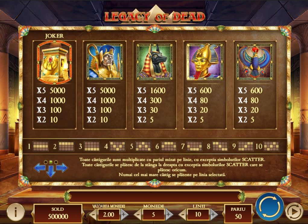 Jocul LEGACY OF DEAD poate fi jucat până sar banii din el la cazinourile online din lista de mai jos. Trebuie să reții că toate cazinourile recomandate sunt licențiate în România și vei juca 100% legal și în siguranță, dar mai mult decât atât, trebuie neapărat să ai în vedere BONUSURILE oferite de fiecare în parte la prima depunere, pentru toți jucătorii care deschid conturi noi!