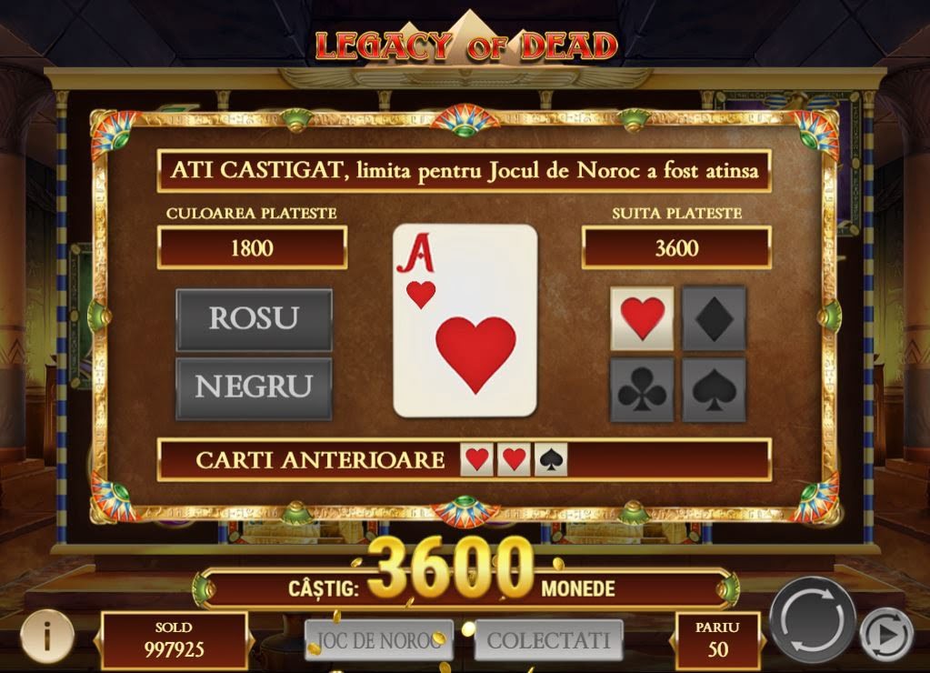 Succesul uriaș al Book of Dead a dus la o continuare a acestui joc ca la aparate: Legacy of Dead. Cu aceiași zei egipteni, opțiuni de rotiri gratuite și dublaje, Legacy of Dead păstrează toate plusurile din Book of Dead și vine cu o experiență grafică și mai bună.