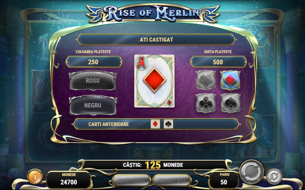 Mega câștigurile sunt aduse, în primul rând, prin dublaje. Iar la Play’n Go dublajele nu sunt doar „roșu sau negru”, ci poți alege exact cartea – inimă roșie, caro, inimă neagră sau treflă. Dacă ai ghicit-o, iei de 4 ori mai mult!
