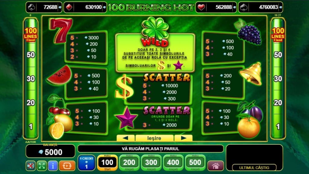 Aproape orice sală de jocuri din România are o variantă a slotului Burning Hot. De foarte mulți ani în topul preferințelor românilor, e unul dintre jocurile ca la aparate EGT care a declanșat o întreagă serie de păcănele. 100 Burning Hot e parte a seriei, unica diferență între ele fiind numărul de linii câștigătoare.