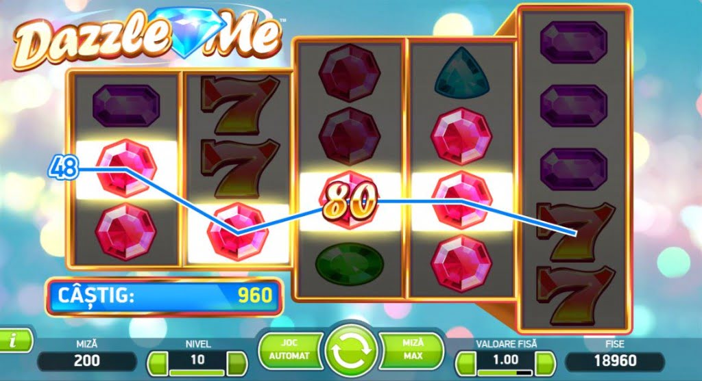 Dazzle Me e un slot video cu diamante, clasic NetEnt: cu simboluri strălucitoare, multicolore, grafică ultra-modernă și multe posibilități de câștig. Dacă ai jucat vreodată Starburst sau Twin Spin, două dintre vedetele NetEnt, vei aprecia și Dazzle Me.