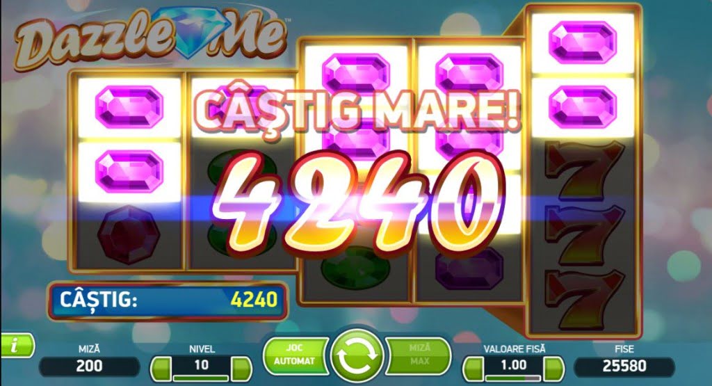 L-am comparat cu Twin Spin pentru că, la fel ca acolo, ai și aici două coloane dublate atunci când intri în modul de runde gratuite. Diamantele strălucitoare te duc cu gândul la clasicul Starburst. Pentru jucătorii de păcănele din săli, Dazzle Me e un joc potrivit – rămâne minimalist și cu accente old-school. Pentru cei care s-au obișnuit cu sloturile online, Dazzle Me rămâne o opțiune foarte bună.