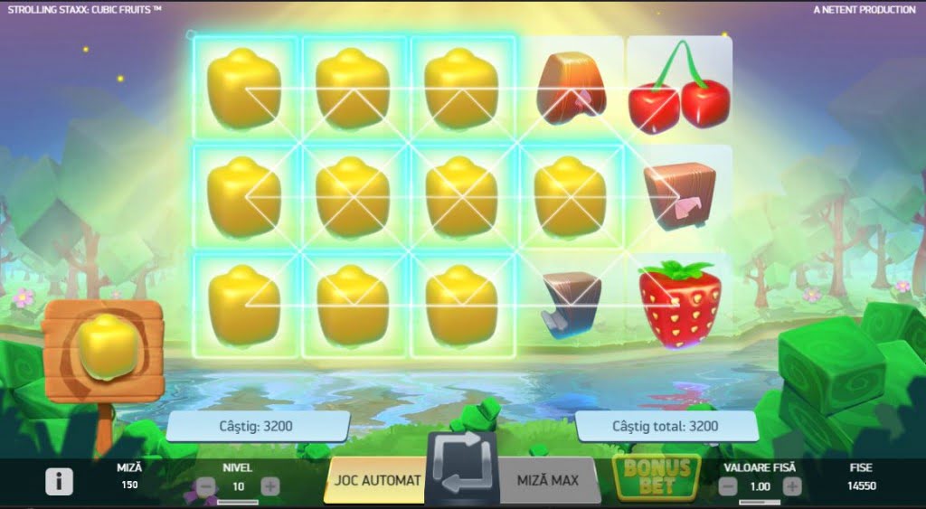 Fructele EGT-ului sunt cele mai căutate în piața de păcănele. Taraba NetEnt-ului are doar câteva. Foarte bune, dar puțină lume ajunge la ele. Fruit Shop e un exemplu bun de joc cu fructe făcut de NetEnt, de mare succes. Strolling Staxx e printre sloturile lor recente cu care încearcă să atragă și fanii jocurilor cu fructe.