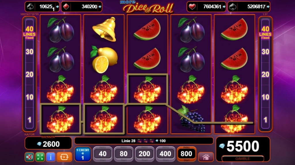 Vei câștiga mai des decât la originalul Dice & Roll, fiind 40 de linii de plată (față de 10). Simbolurile cele mai bune sunt șeptarii și clopoțeii, ca valoare a câștigurilor. Ca volum, cel mai des vei încasa cu fructele, dar pentru sume consistente va trebui să dublezi. Mega câștiguri vin cu Wild-ul care se extinde pe toate spațiile din jurul lui. De exemplu, un Wild pe mijlocul ecranului se extinde pe toate coloanele 2-3-4, deci ai 9 Wild-uri pe ecran și cel puțin 4 poziții care plătesc pe linie.