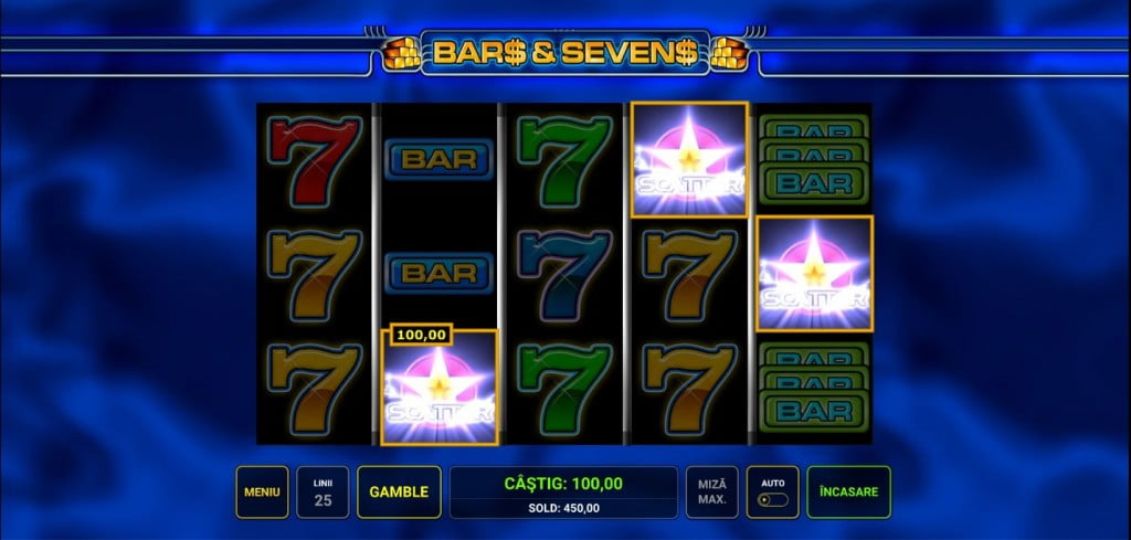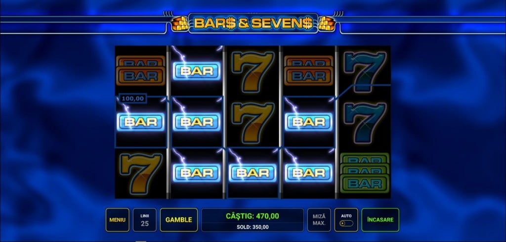 Bars & Sevens, asta e tot ce avem aici. Baruri și șeptari. Unul dintre cele mai minimaliste jocuri create vreodată de Novomatic, având marele avantaj că pot veni câștiguri mari.
