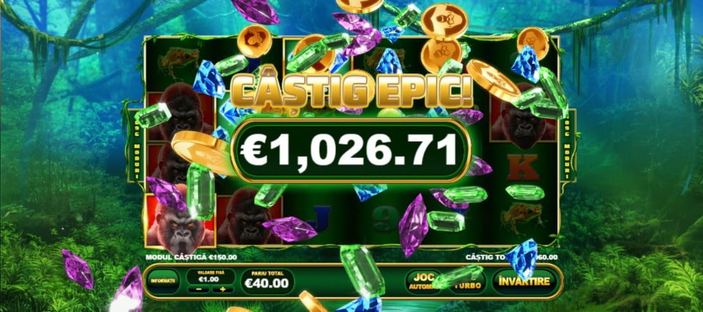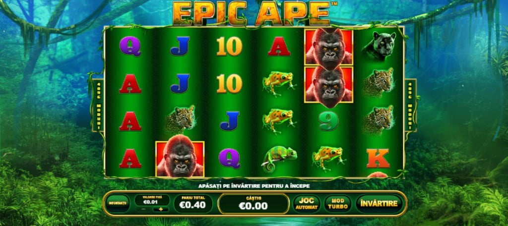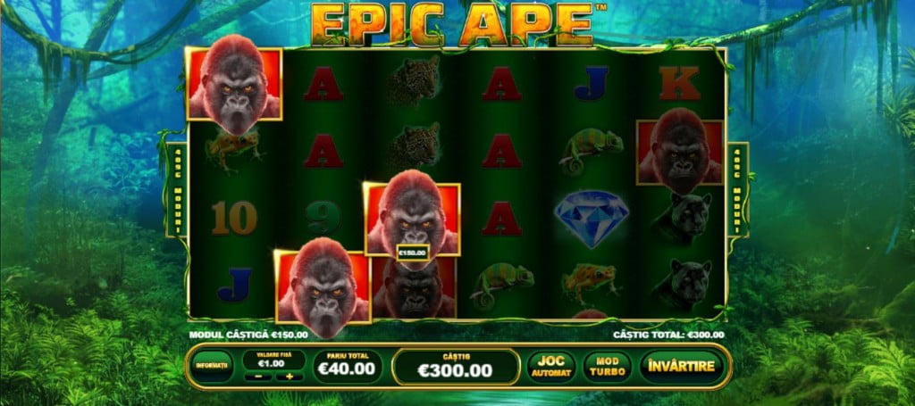 Epic Ape e unul dintre jocurile la care, dacă un cazino online dă rotiri gratuite, ești sigur că iei ceva. Cam o rotire din 3 aduce bani, chiar dacă nu sunt mulți. Vă recomand să fiți atenți când sunt promoții cu jocul ăsta, pentru că e printre cele mai bune. Chiar dacă nu iei milioane, sigur sunt bani în plus. Contra-exemplele sunt jocurile unde ai puține linii de plată sau multe simboluri. Valoarea rotirilor gratuite oricum e mică la orice joc, așa că mai bine iei 4-5 lei la fiecare rundă decât să nu iei nimic.