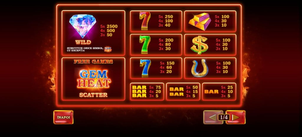 Gem Heat e jocul cu șeptari și diamante de la PlayTech. Furnizorul ne-a obișnuit cu un alt tip de sloturi video, dar merge și în zona celor clasice cu câteva lansări, cea mai cunoscută fiind Gem Heat.