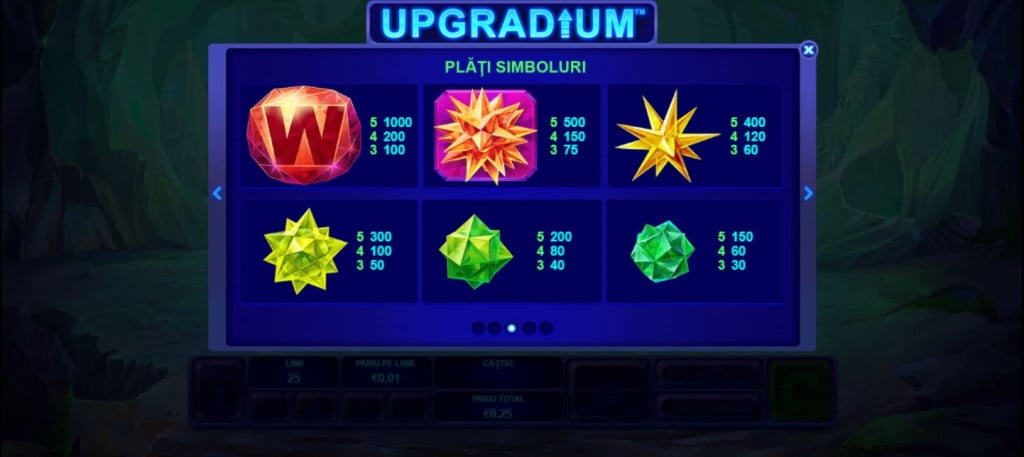 Prin Upgradium, PlayTech merge în tematica diamantelor și păstrează lucrul meu preferat de la sloturile lor: bonusurile foarte diferite și cu mega câștiguri. Chiar dacă aici e vorba de unul singur, e suficient de interesant și de generos încât să-mi țină atenția.