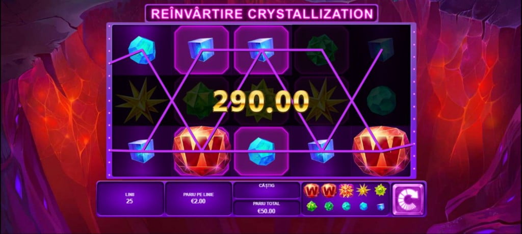 Câștigurile mari vin prin bonusul Reînvârtire Crystallization. Dacă steluța pe fundal roz ajunge pe hotspot-ul rotirii, secvența de bonus este declanșată. Toate simbolurile își fac astfel upgrade către următorul simbol ca valoare. Coloanele 2, 3 și 4 devin Hotspot-uri integrale, iar apoi are loc re-rotirea. Dacă aterizează din nou Scatter-ul pe un Hotspot, secvența continuă.