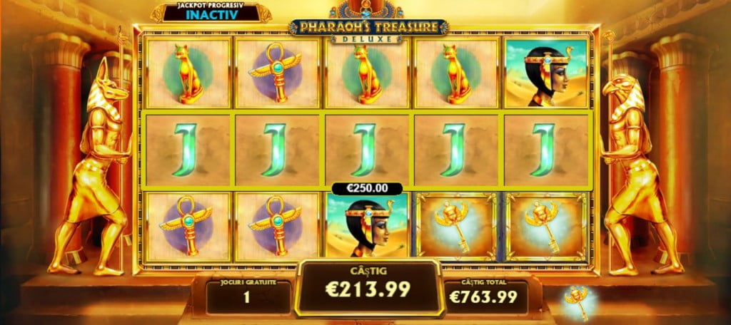 Pharaoh’s Treasure Deluxe ne duce aproape de comorile faraonilor. Plin de bonusuri și cu jackpot, slotul PlayTech e printre cele mai bune egiptene pe care le puteți juca.
