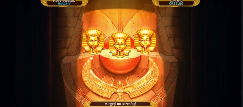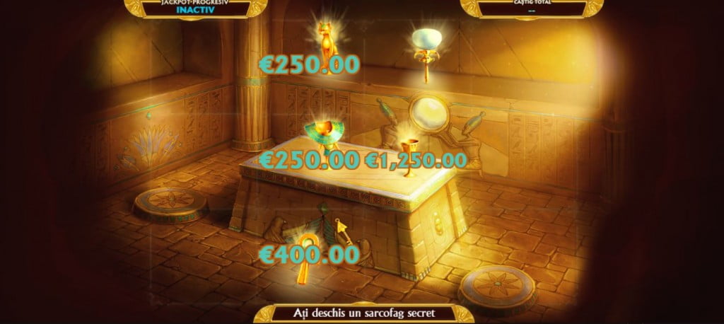 Și aici poți ajunge în Camera Sarcofagului, dacă ai simbolurile potrivite, iar acolo iei sume foarte mari de bani sau chiar Jackpotul!