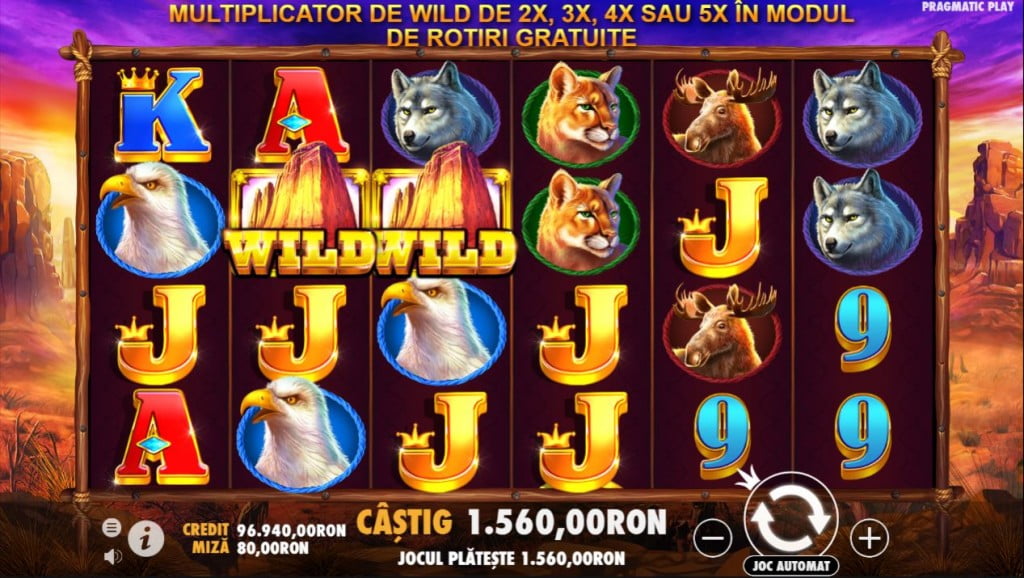 Bizonul e cel mai bun din junglă și îți dă miza de 6 ori când apare pe fiecare coloană. Urmează vulturul, puma, lupul, elanul și alte simboluri mici cu cărți – de la 9 la A.
