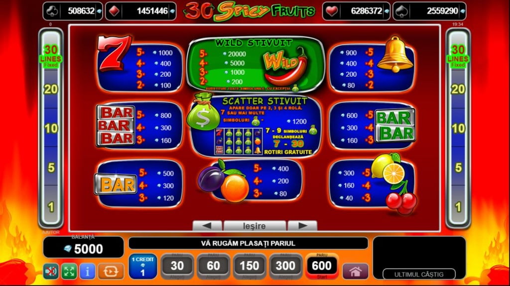Păcănelele cu fructe sunt sinonime cu EGT iar pe cele bune le știm toți și le-am lăudat de multe ori. 30 Spicy Fruits nu ar intra în categoria lor. Ca grafică, e același joc de fructe pe care-l știm de ani de zile, iar funcționalitățile slotului sunt destul de simple. Aceleași simboluri, Wild-ul rămâne superior celor simple, iar bonusurile sunt doar în rotiri gratuite, dublaje și Jackpot. Nu-s impresionată.