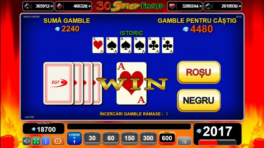 Orice câștig poate deveni foarte mare cu dublaje. E opțiunea clasică de la EGT: alegi, după fiecare câștig, dacă încasezi sau încerci să-l dublezi. Dacă vrei dublajul, e totul sau nimic: nimerești culoarea asului care se va întoarce și profitul tău e de două ori mai mare sau nu o nimerești și ai pierdut totul. Atenție mare aici, nu încerca să dublezi chiar orice rundă, că n-o să mai câștigi nimic. Când ajungi la o sumă bună, bagă în casă.