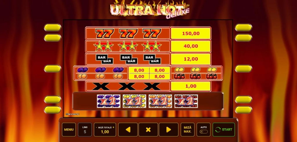 Ultra Hot Deluxe e un joc cu fructe și șeptari de la Novomatic extrem de simplu, la care poți câștiga sume colosale.