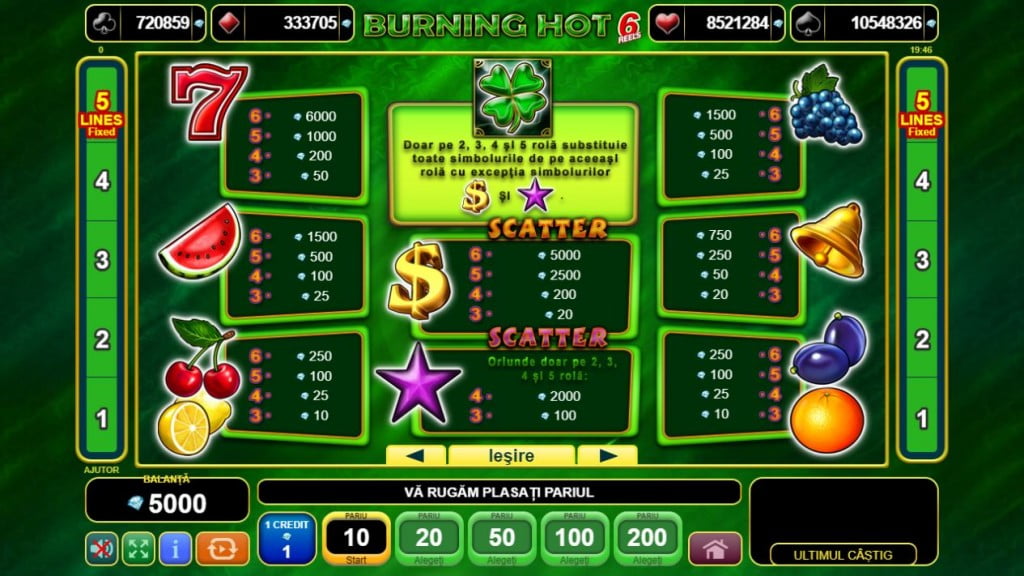 Cred că am deja vreo 5 recenzii scrise la Burning Hot și derivate ale jocului. Mai găsiți sigur pe blog și la versiunile cu mai multe linii de plată (20, 40, 100) și la cel cu 40 de lini și 6 coloane. Dacă nu vă atrage Burning Hot 6 Reels, puteți vedea articolele mele despre celelalte.