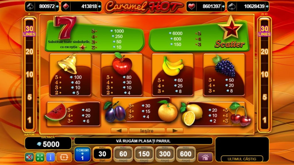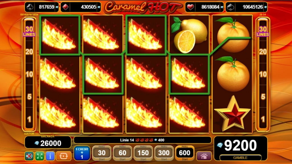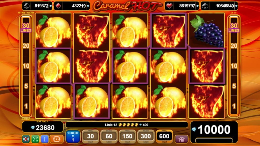 Caramel Hot e un aparat EGT din categoria jocurilor „hot” cu fructe pe care le știm toți foarte bine. 777, fructe, dublaje și jackpot. Cam despre asta e vorba aici.