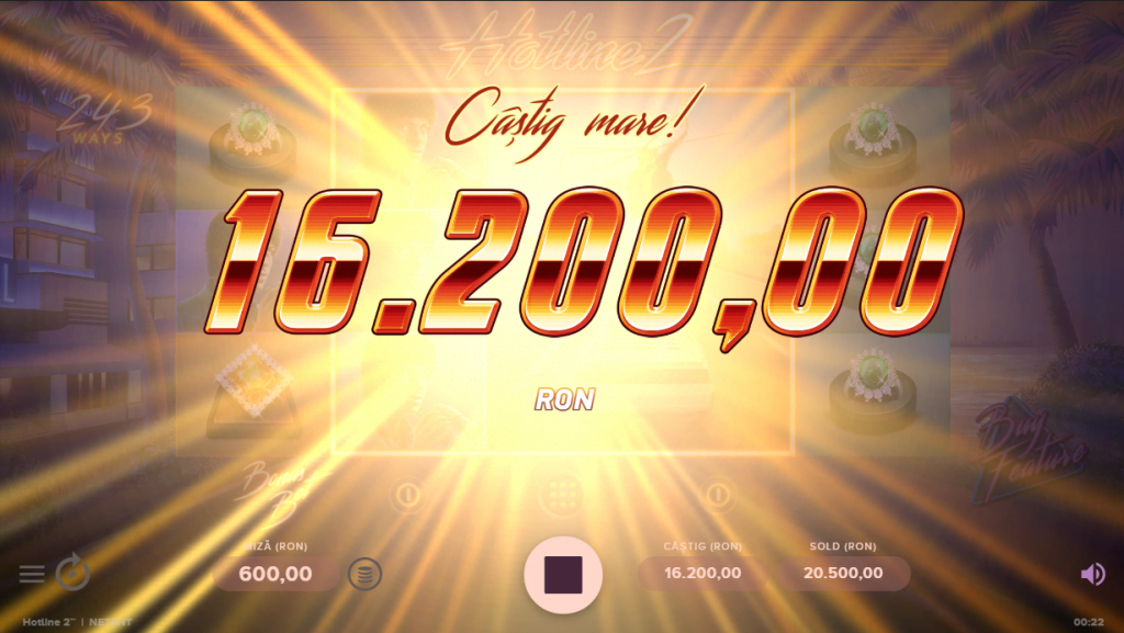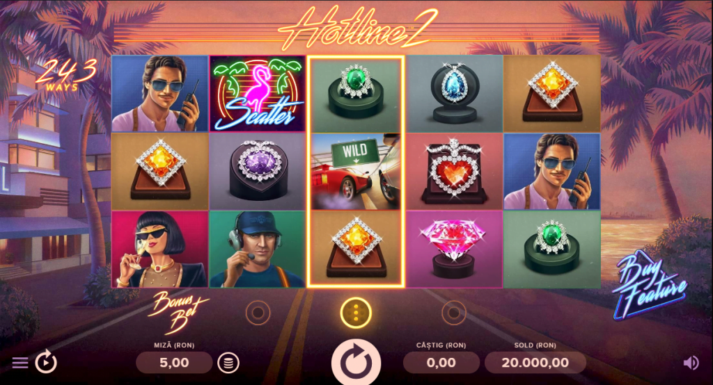 Hotline 2 e continuarea mult, mult așteptată a unuia dintre cele mai tari sloturi de acțiune făcute de NetEnt. Jefuitoarea magazinului de diamante, polițiștii, Miami din anii 90 – ce păcat că nu exista și un aparat de sală ca ăsta pe vremuri!