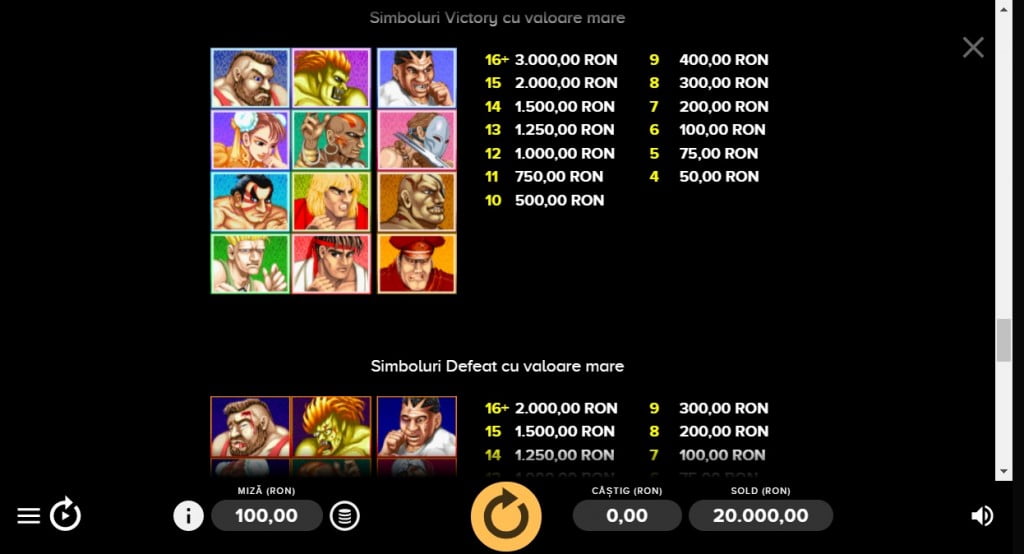 Jocul STREET FIGHTER 2 poate fi jucat până sar banii din el la cazinourile online din lista de mai jos. Trebuie să reții că toate cazinourile recomandate sunt licențiate în România și vei juca 100% legal și în siguranță, dar mai mult decât atât, trebuie neapărat să ai în vedere BONUSURILE oferite de fiecare în parte la prima depunere, pentru toți jucătorii care deschid conturi noi!