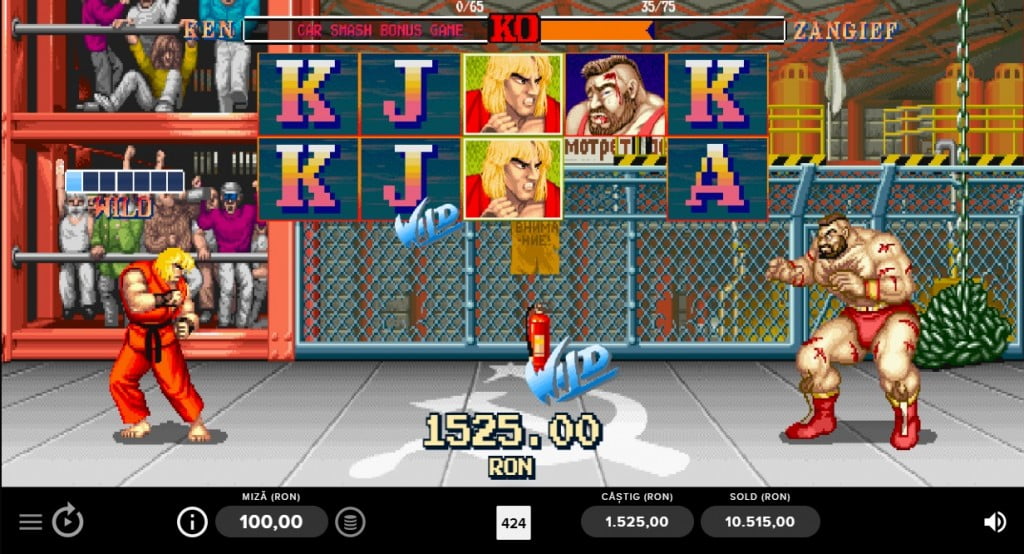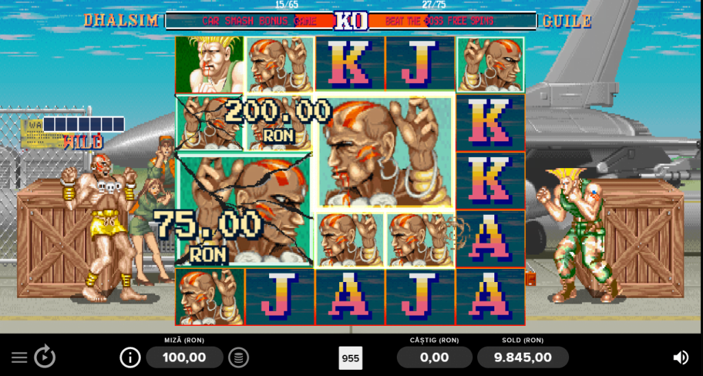 Street Fighter 2 e inspirat din jocul cu același nume disponibil pe consolele din anii 90. Dacă jocul de consolă a fost revoluționar, îmi permit să spun același lucru și despre jocul de aparate. Începi prin alegerea personajului, ca în jocul original, și în funcție de el se stabilesc și bonusurile pe care le poți primi!