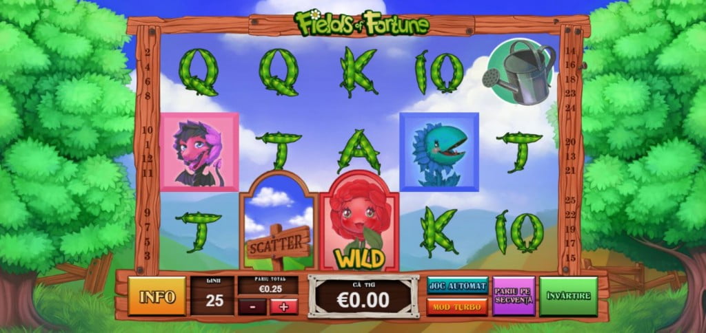 Glumesc eu că e un joc pentru grădinari, că are destule flori și simboluri tematice, dar ar trebui să vă placă tuturor. Chiar dacă ideea slotului nu e pe gustul vostru. PlayTech are bonusuri sale ieșite din tipare, cu care ridică foarte mult și aparatul Fields of Fortune. Câmpiile sunt, așadar, pline de noroc. Un Wild care se extinde pe toată rola și două posibilități de jocuri speciale sunt „semințele” aparatului, dar dacă nu vrei ceva BIO și vrei să… stropești plantele, o poți face: e și opțiunea de cumpărare a specialei!
