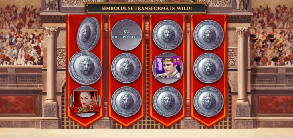 Simbolurile speciale sunt Wild, Scatter și Bonus. Gladiatorul e Wild – de fapt, poate deveni. E un simbol obișnuit, cu plată de miza x40, dar dacă apare stivuit pe coloană se transformă în Wild. Scatter e simbolul cu armele și declanșează rotirile gratuite: Bonus e simbolul cu coiful de gladiator și te duce în modul de bonus.