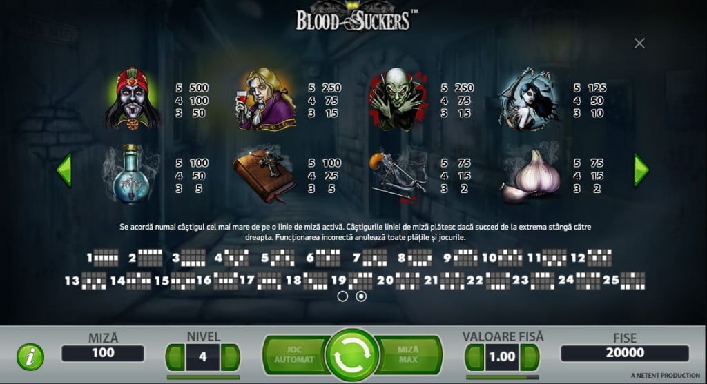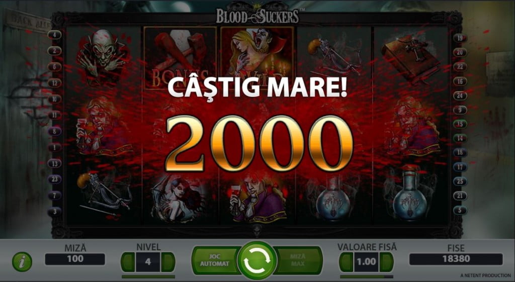 Jocul BLOOD SUCKERS poate fi jucat până sar banii din el la cazinourile online din lista de mai jos. Trebuie să reții că toate cazinourile recomandate sunt licențiate în România și vei juca 100% legal și în siguranță, dar mai mult decât atât, trebuie neapărat să ai în vedere BONUSURILE oferite de fiecare în parte la prima depunere, pentru toți jucătorii care deschid conturi noi!
