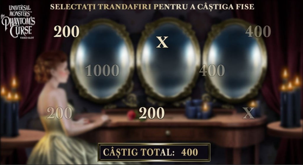 Pick and Click: se activează când ai pe prima coloană un Stacked Phantom stivuit și pe ultima un Stacked Christine stivuit (acoperă întreaga coloană). Prima fază a bonusului e cu 8 trandafiri pe ecran. Trandafirii pot avea fie câștiguri în bani, care merg direct în buzunarul tău, fie un X care încheie runda. După ce dai de X treci în partea a doua a bonusului, unde ai trei oglinzi – fiecare cu multiplicator (x1, x2 și x3). Oglinda aleasă va înmulți câștigurile aduse de trandafiri cu multiplicatorul ei.