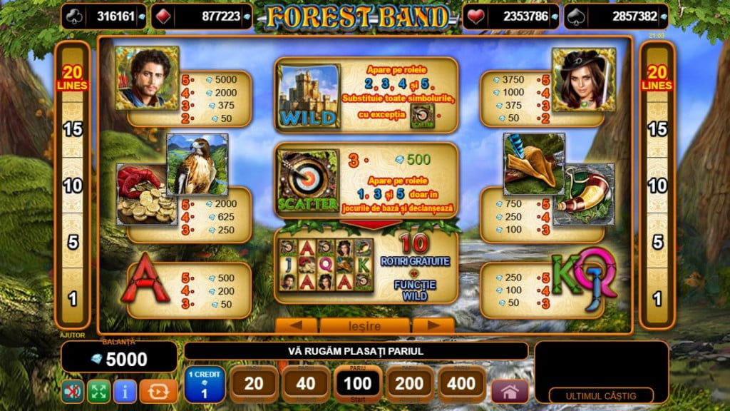 Forest Band de la EGT are Jackpot, dublaje și rotiri gratuite. Ideea și grafica jocului nu sunt extraordinare, dar compensează prin bonusuri.
