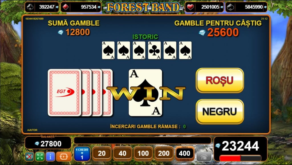 Aproape toate păcănelele EGT sunt jocuri cu dublaje, opțiunea de „totul sau nimic” care te poate umple de bani sau te poate lăsa fără ei. După fiecare rundă câștigătoare alegi dacă încasezi suma rundei sau dacă încerci să o dublezi. Dacă mergi la dublaj (Gamble), pe ecran vor apărea, pe rând, ași. Tu trebuie să ghicești culoarea lor (roșu sau negru). Dacă ai ghicit, câștigul tău e de două ori mai mare. Dacă nu, ai pierdut toți banii. Poți avea până la 4-5 dublaje, în funcție de câștig sau de joc, dar recomandarea mea e să nu încerci de fiecare dată să te duci până la ultimul. Încasează când ai sume bune.