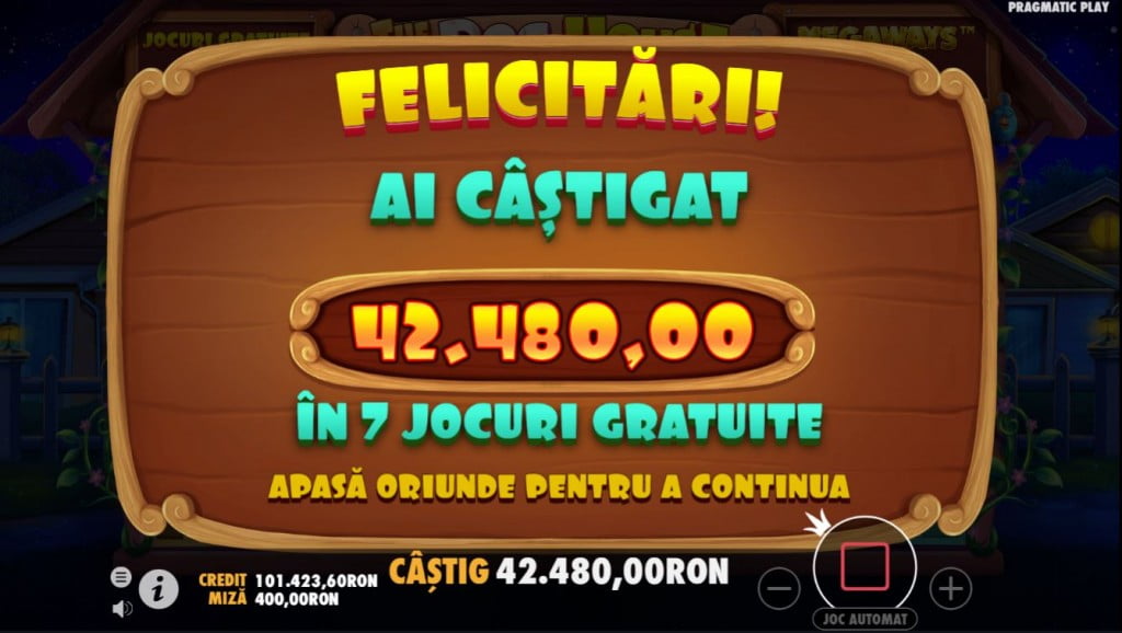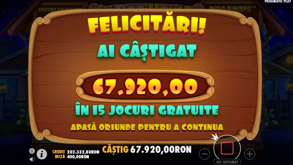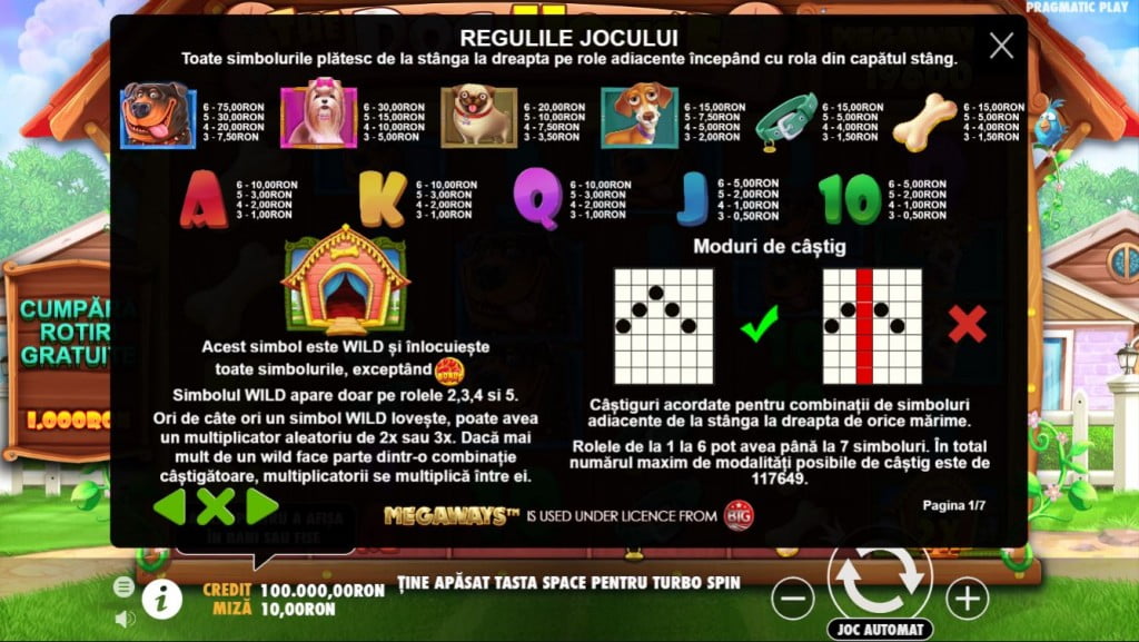 De The Dog House am mai scris, mie îmi place jocul. Și grafica, cu toți cățeii zâmbitori, dar și pentru modurile de câștig. Cu versiunea de Megaways, posibilitățile de câștig cresc la peste 100.000. Numărul liniilor de plată variază la fiecare rotire și plătesc toate simbolurile de pe coloane adiacente, deci oricât ar varia, tot sunt câteva sute. Rotirile gratuite vin mult mai ușor decât la primul joc, dar e și opțiunea să le cumpărăm, și nu mai e nevoie să dăm noi spin-uri până la specială. Toate cu Sticky Wild, cum e frumos.