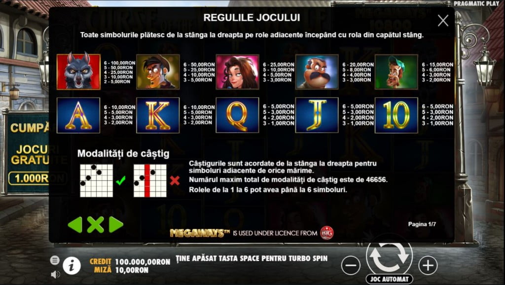 E un joc de aparate Megaways, așa că vei încasa foarte des, dar nu sunt sume colosale. Vârcolacul e bun pentru încasat, simbolul misterios te poate ajuta și el mult, iar Wild-ul e baza. Dar, repet, banii mulți vin la bonus. O semi-specială e SuperRotirea, care se poate activa oricând în jocul obișnuit și aduce doar simboluri cu valoare mare. Câștigurile sunt garantate la ea.