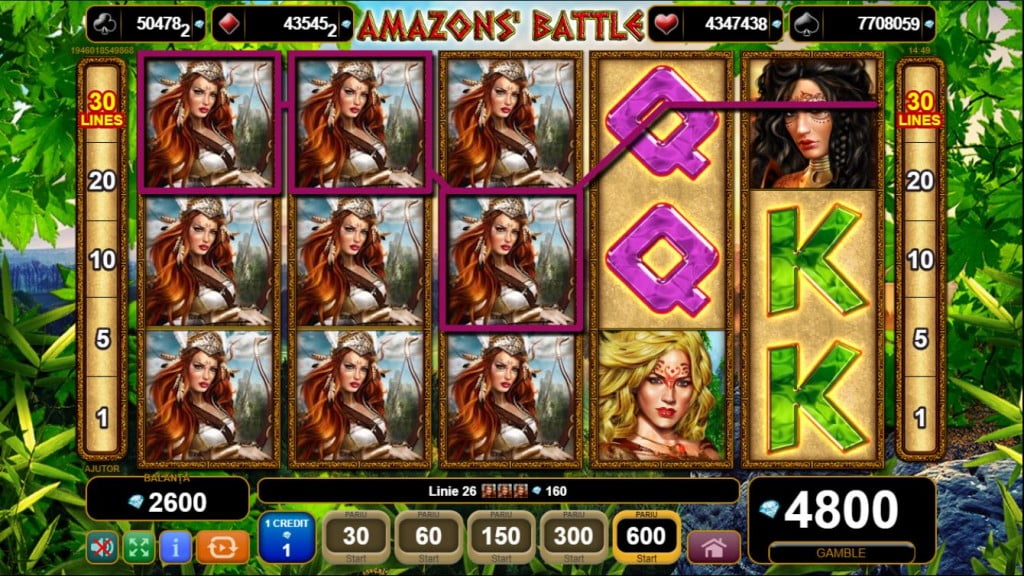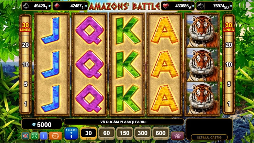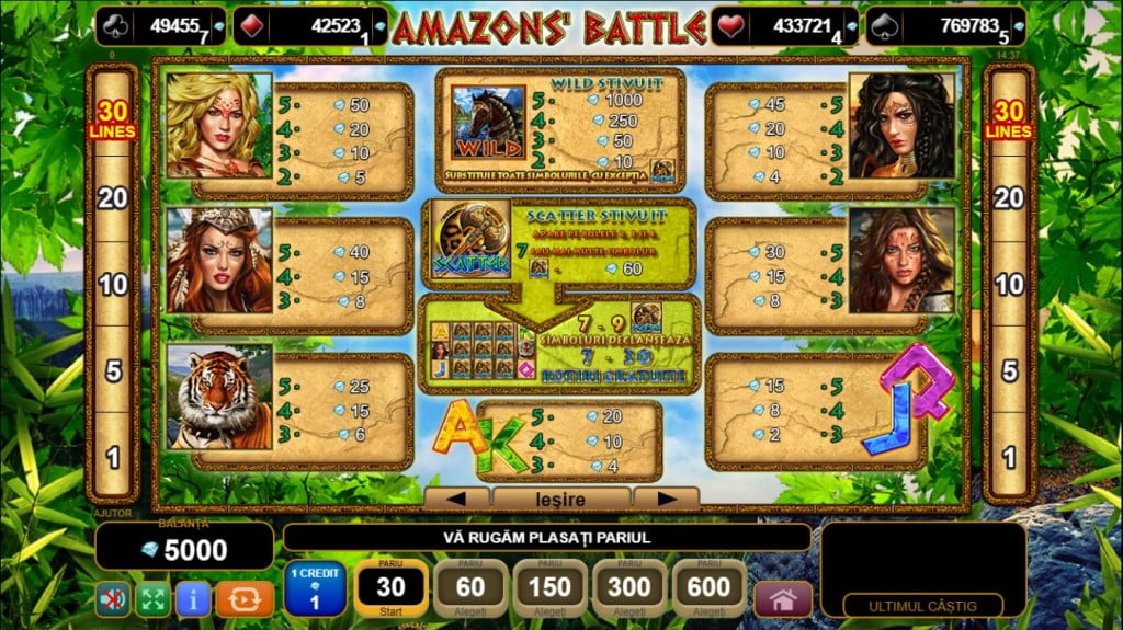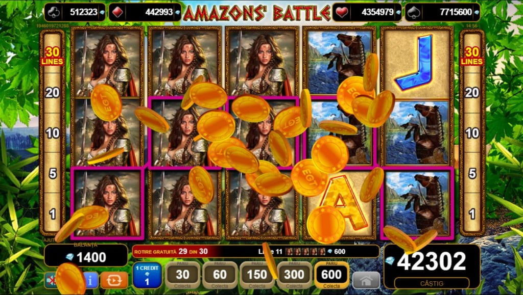 Amazons Battle, cu 4 amazoane superbe. Cele mai tari simboluri dintr-un joc de aparate dedicat Amazonului, fără discuție.