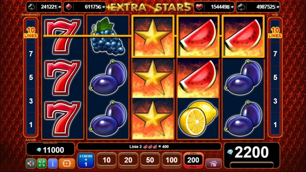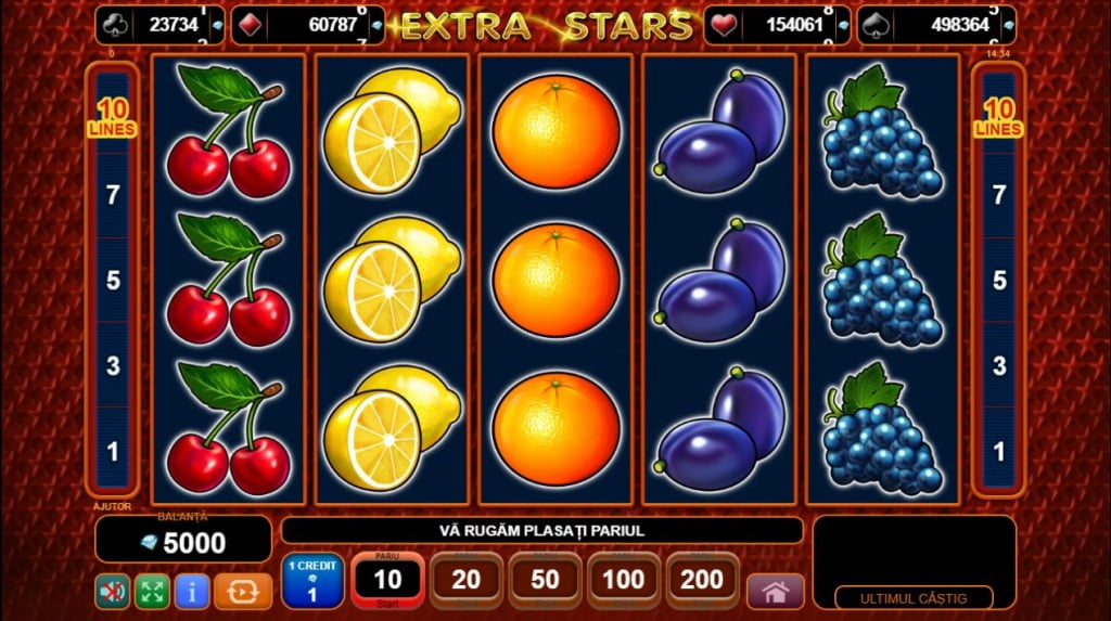 Extra Stars e un joc de aparate EGT 777 cu fructe, steluțe și re-rotiri. Un joc extra reușit, în stilul old-school.