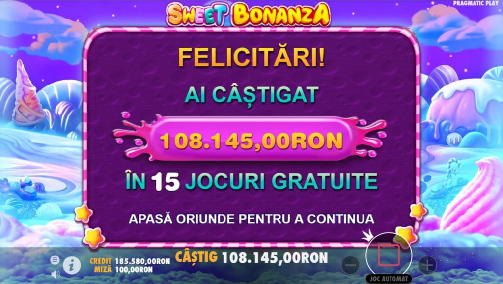 Jocul SWEET BONANZA poate fi jucat până sar banii din el la cazinourile online din lista de mai jos. Trebuie să reții că toate cazinourile recomandate sunt licențiate în România și vei juca 100% legal și în siguranță, dar mai mult decât atât, trebuie neapărat să ai în vedere BONUSURILE oferite de fiecare în parte la prima depunere, pentru toți jucătorii care deschid conturi noi!