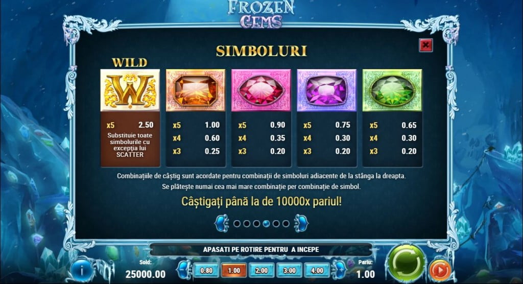 Frozen Gems e un joc de aparate cu diamante de la PlayNGo. 5×3 cu o coloană suplimentară specială care aduce Wild-uri și mărește numărul liniilor de plată!