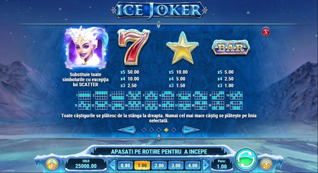 Șeptarii și steluțele pot aduce banii, dar bogăția e la Joker. Când apare vin și banii. Ai cel puțin 3 re-rotiri de fiecare dată când Ice Joker e pe ecran. Se extinde pe coloană câte un spațiu, iar după ce o umple pe toată dispare. Doar că dacă apare un nou astfel de simbol în timpul re-rotirilor, ele se prelungesc până nu mai e niciun simbol special pe ecran.