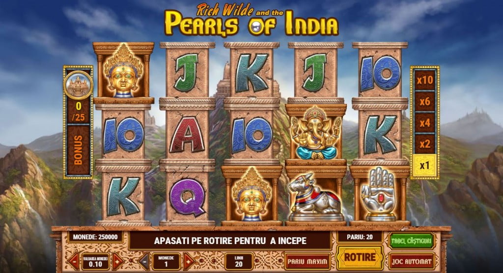 Pearls of India e preferatul meu din seria de păcănele a lui Rich Wilde. Nu e cel mai bun grafic, nici povestea nu e prea diferită de restul (peste tot îl ai pe Rich Wilde între o grămadă de zei și de simboluri mitologice din diferite culturi), dar modurile de câștig și bonusurile disponibile sunt suficiente pentru a-l face un joc de aparate de top.