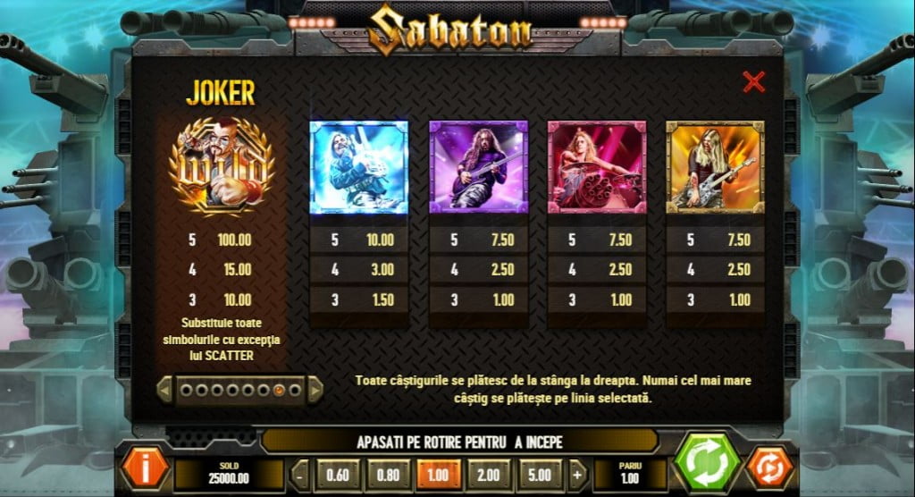 Sabaton e un slot online făcut de Play’n Go având ca inspirație trupa suedeză de heavy metal cu acest nume.