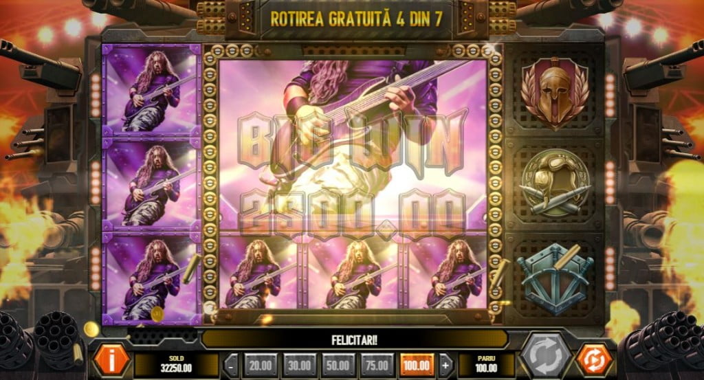 Avem două simboluri speciale: Wild și Scatter. Wild e vocalistul trupei și înlocuiește orice simbol. Scatter e S-ul și acordă rotiri gratuite.