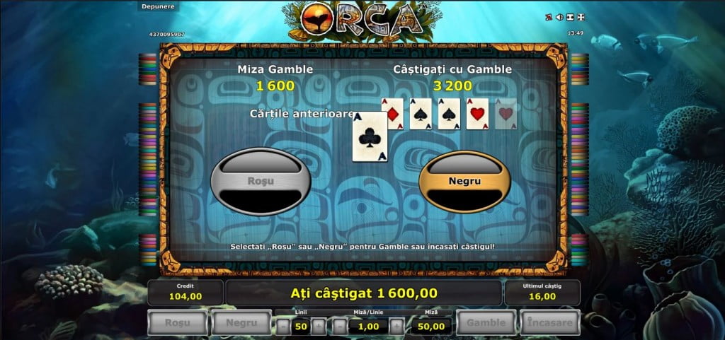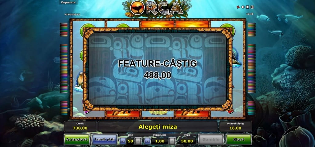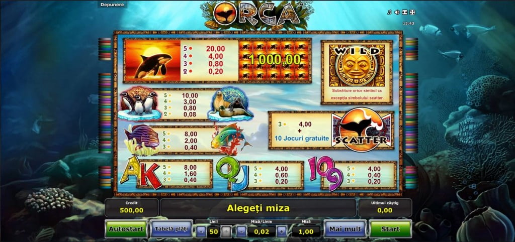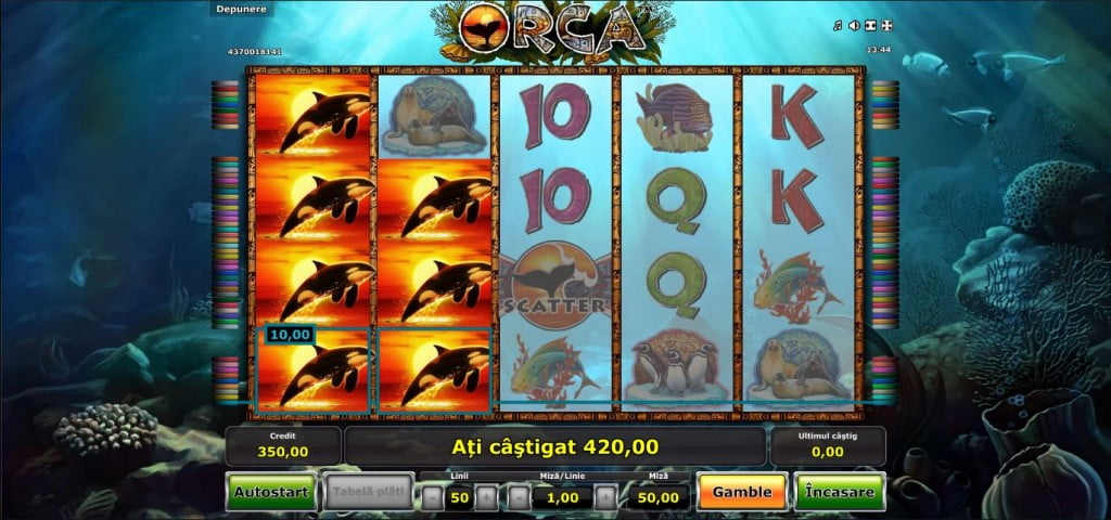 La gameplay e în nota multor aparate Novomatic. Rotiri gratuite și dublaje, aici se opresc bonusurile. Deci, dacă sunteți familiarizați cu jocurile de păcănele vechi făcute de ei, n-o să vă surprindă Orca.