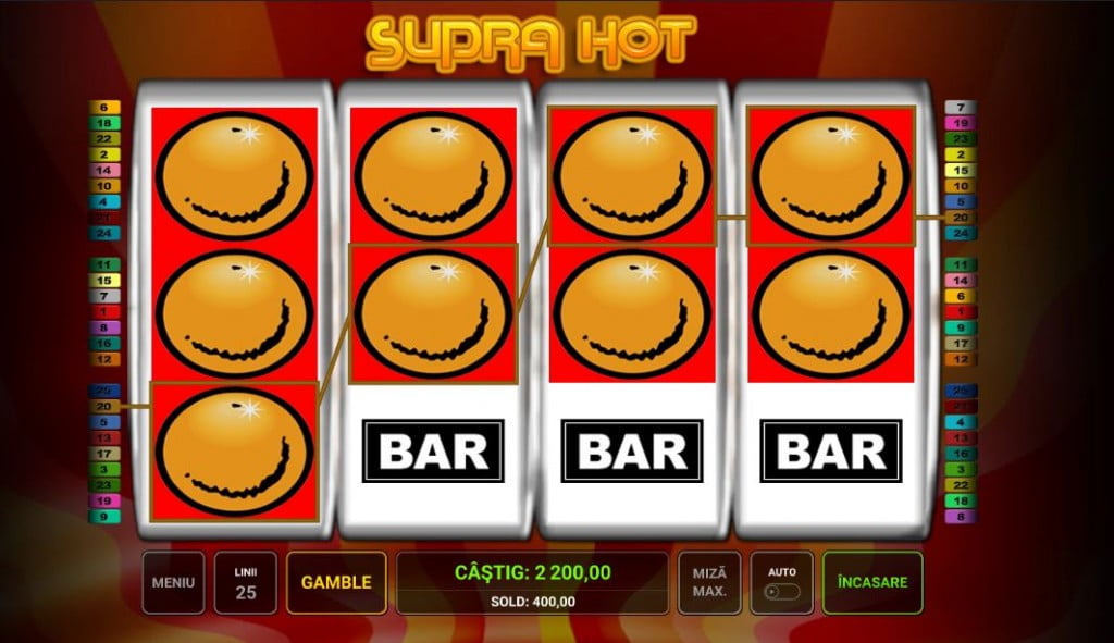Jocul SUPRA HOT poate fi jucat până sar banii din el la cazinourile online din lista de mai jos. Trebuie să reții că toate cazinourile recomandate sunt licențiate în România și vei juca 100% legal și în siguranță, dar mai mult decât atât, trebuie neapărat să ai în vedere BONUSURILE oferite de fiecare în parte la prima depunere, pentru toți jucătorii care deschid conturi noi!