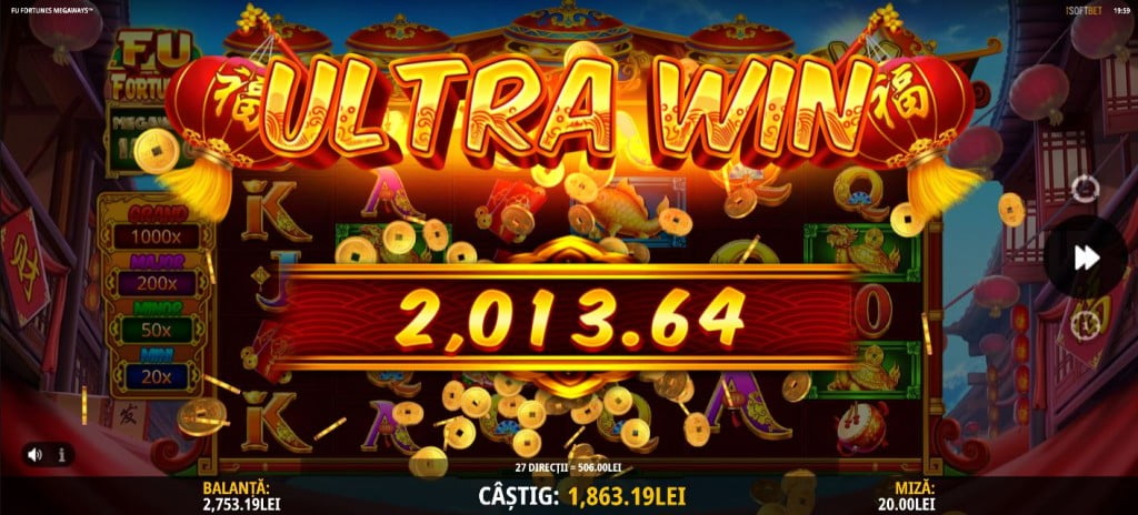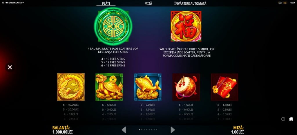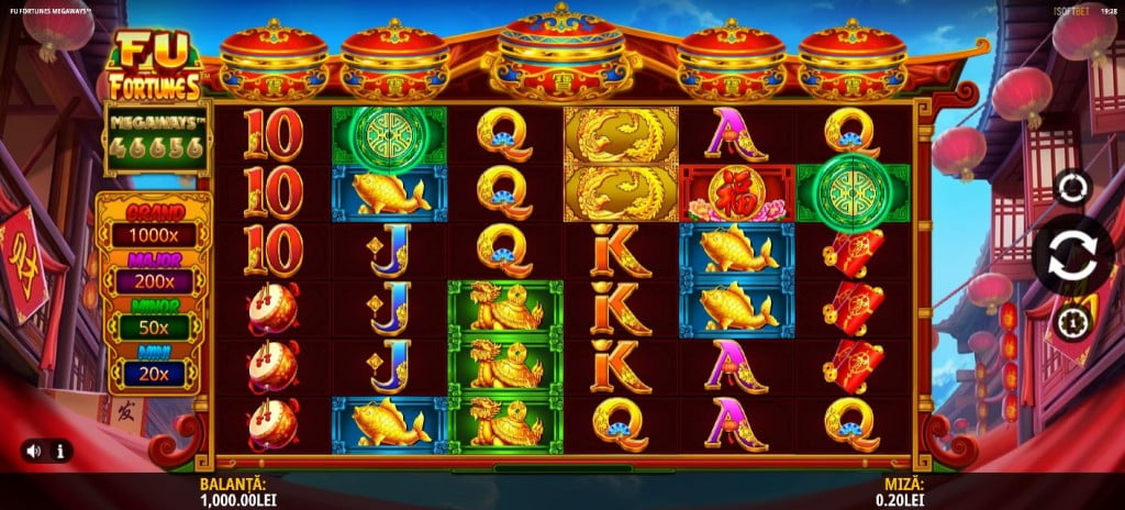 La Fu Fortunes avem cascade, multiplicatori, rotiri gratuite, dar și un Jackpot! Ca la toate aparatele făcute în formatul Megaways, grafica și simbolurile sunt absolut excepționale, iar modurile de plată variate și relativ ușor de prins.