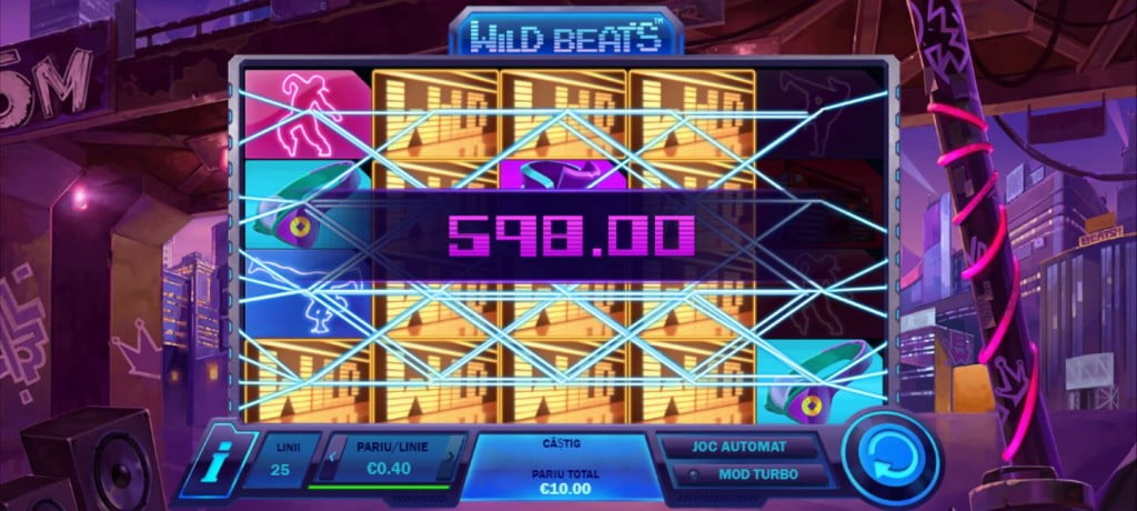 Wild Beats e un joc de păcănele cu muzică bună pentru un bass dat tare, cu doi dansatori ca personaje principale.
